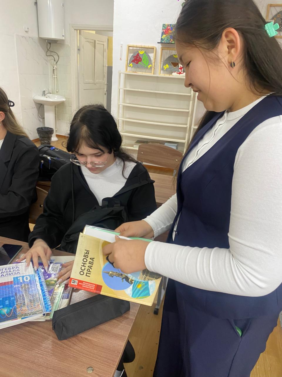 Біздің мектебімізде мектеп оқулықтарының қауіпсіздігін қамтамасыз ету үшін тексерулер жүргізуде. Тексерулер 1-ден 11-ге дейінгі барлық сыныптарда жүргізіледі. Тексеруге сыныптағы оқулықтардың бар-жоғын, мұқабалардың бар-жоғын және оқулықтардың сыртқы түрін тексеру кіреді. Тексеруге кітапханашы, мектеп президенті және оқушылардың өзін-өзі басқару өкілдері қатысты. Келесі қорытындылар жасалды: оқушылардың көпшілігі оқулықтарын жақсы жағдайда ұстайды, оларды мектеп кестесіне сәйкес алып жүреді және барлық оқушылар тамыз айында оқулықтарын алған кезде таныс болған оқулықтарды пайдалану ережелеріне сәйкес гигиенасын сақтайды. Оқулықтарының мұқабасы жоқ немесе шағын жөндеуді қажет ететін (желімдеу, мұқабасын ауыстыру, жазбаларды өшіру) оқушылармен «Мектеп оқулықтарын ұқыпты ұстау» тақырыбында талқылау өткізілді. Бұл ең алдымен орта мектеп оқушыларына қатысты. Бастауыш және жоғары сынып оқушыларында оқулықтар жақсы жағдайда. Рейд барысында оқушыларға мектеп кітапханасынан оқулықтарды пайдаланудың негізгі ережелері және оқулықтардың зақымдануы немесе жоғалуы үшін жауапкершілік тағы да еске салынды.
