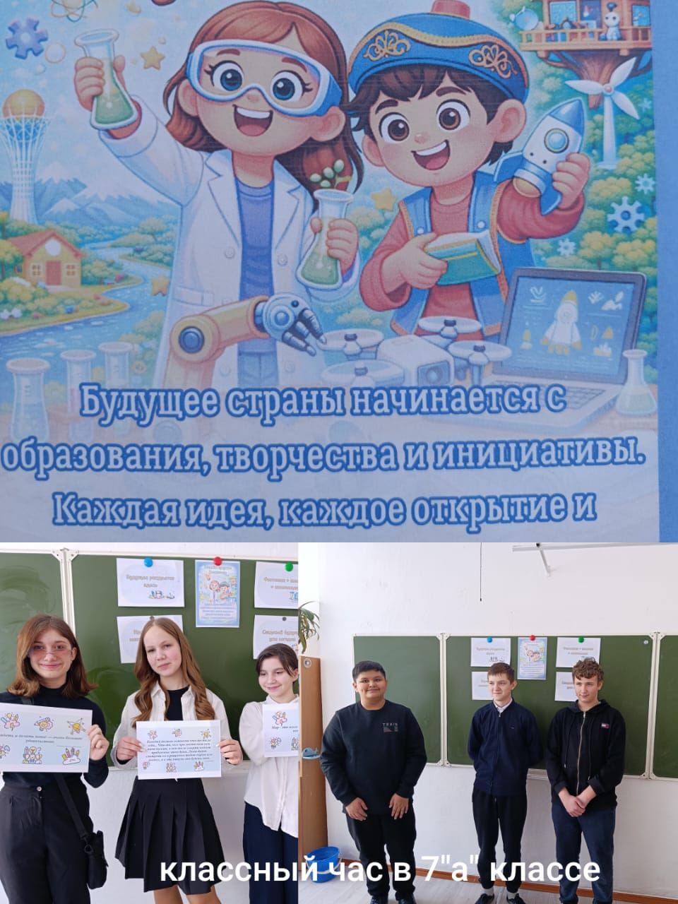 Бүгін, 2 ақпанда, 1–11 сыныптардың барлығында «Жасампаздық пен жаңашылдық» құндылығы аясында сынып сағаттары өтті.