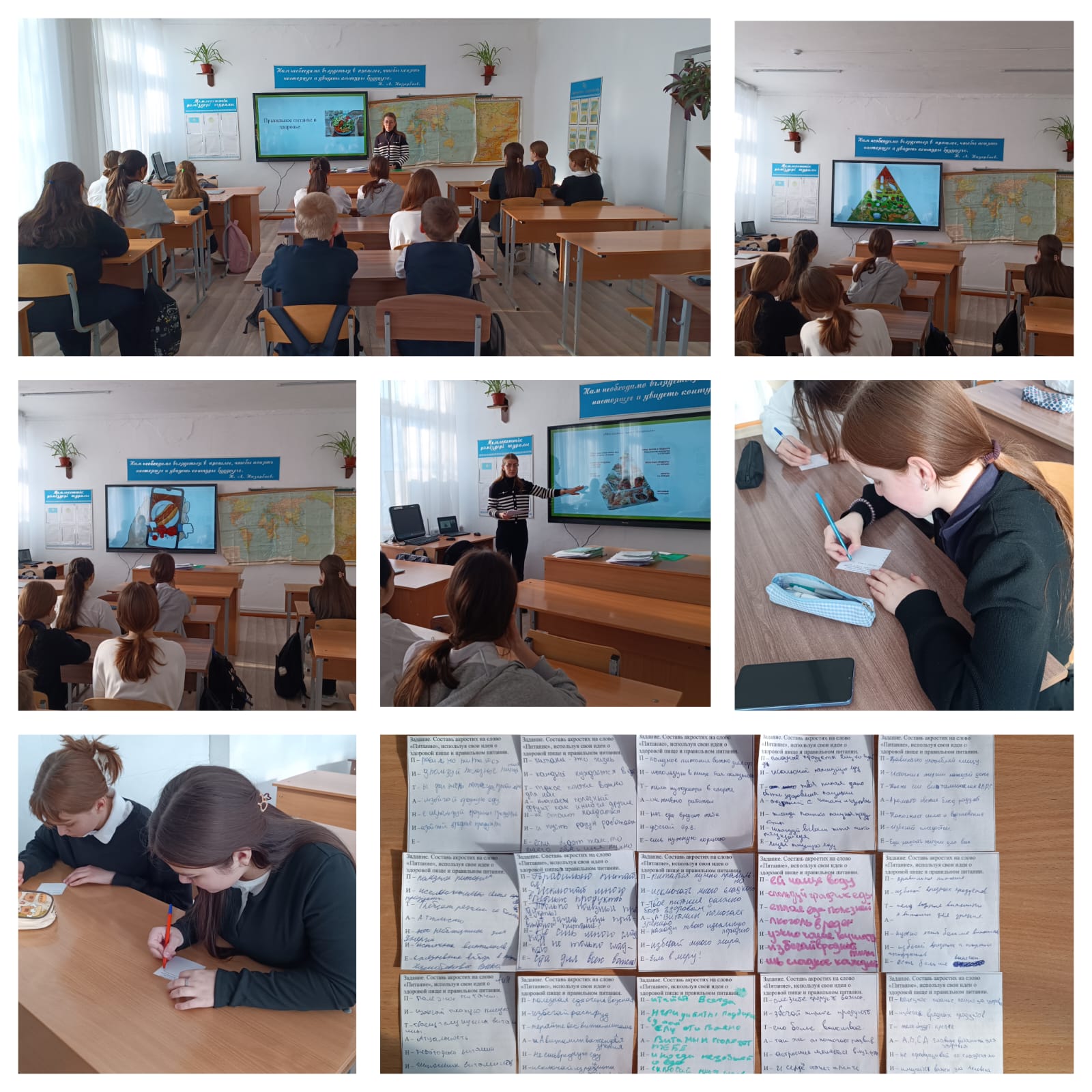 Сынып сағаттары әңгіме, пікірталас және интерактивті тапсырмалар форматында өтті. Бұл оқушылардың белсенді қатысуына, өз ойларын еркін жеткізуіне мүмкіндік берді. Мұндай іс-шаралар білім алушылардың жауапты, белсенді және жасампаз өмірлік ұстанымын қалыптастыруға ықпал етеді.